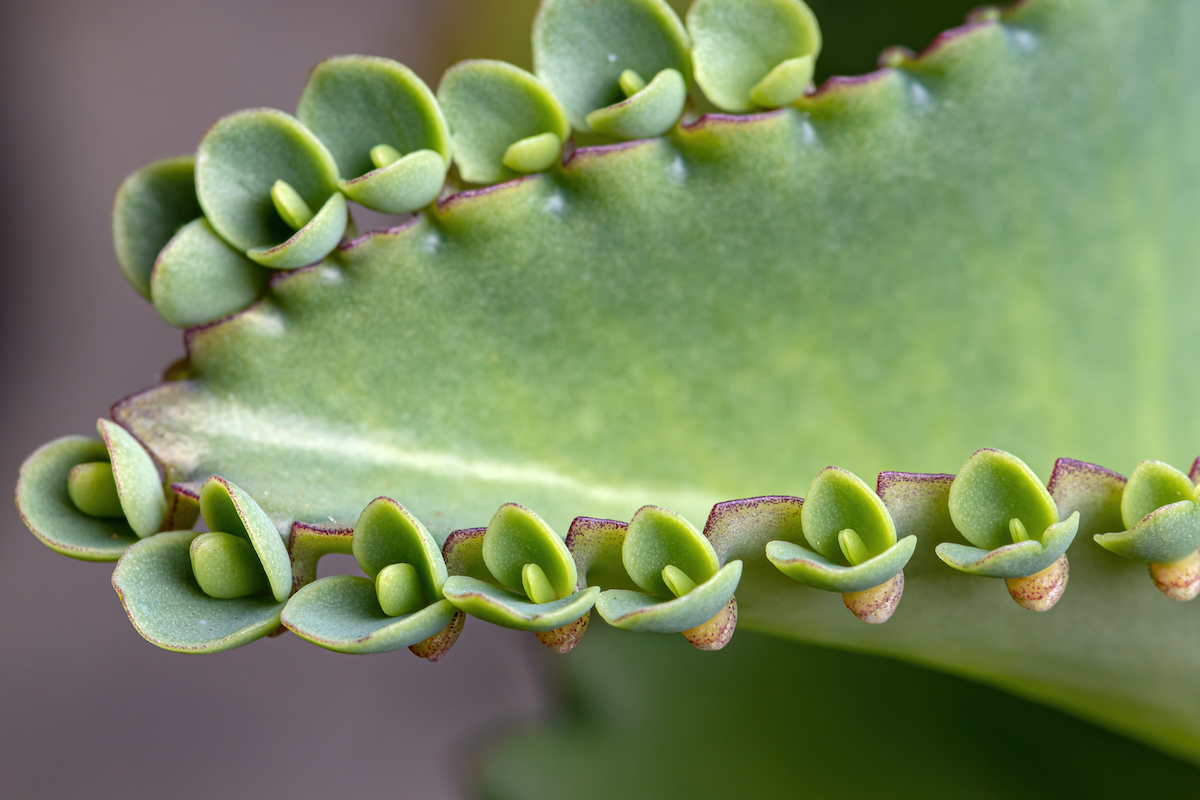 Many houseplants are tricky to propagate; they need rooting hormone and plenty of patience to produce a few rooted cuttings. But the mother of thousands(Kalanchoe daigremontiana)sprouts so easily that we’ve been warned: You may need to share some of these prolific plants with friends to keep your home from being overrun with mother of thousands!